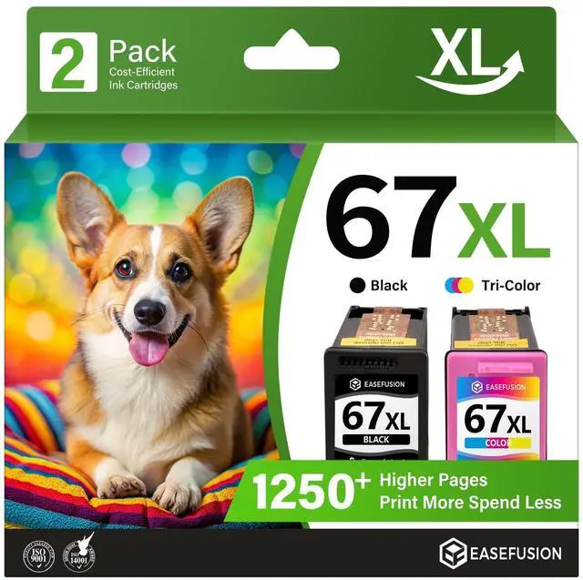 Premium Ink Cartridges: EaseFusion replacement for hp 67 ink cartridges black/color combo pack includes 67xl black ink cartridge and 67xl color ink cartridge (2 Pack). Each 67 xl ink cartridge for hp printers is individually packaged to better protect the chip and print head from ink leakage, ensuring that you receive 67xl ink in good condition and can start printing right away ^^
