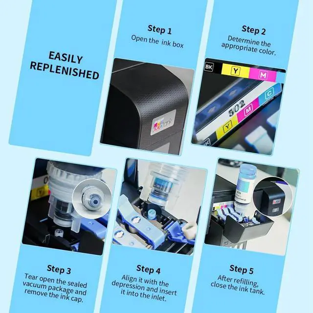 After Sales Service: Oranysty compatible ink refill bottles undergo rigorous installation testing at the factory to ensure a high degree of compatibility with Ecotank printers. We are there whenever you need us. 24-hour technical support. Any defective ink can be returned or replaced.