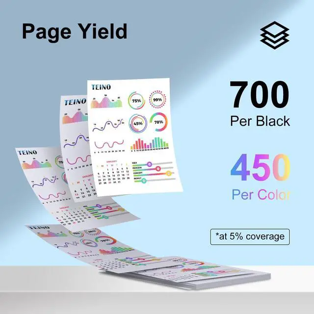 More page yields: 700 pages for 901XL black ink cartridge, 450 pages for 901XL color ink cartridge at 5% coverage ^^ TEINO ink cartridges display ink level real-time, deliver crisp, clear images and text. An ideal choice for home, office, school users looking for professional quality printing