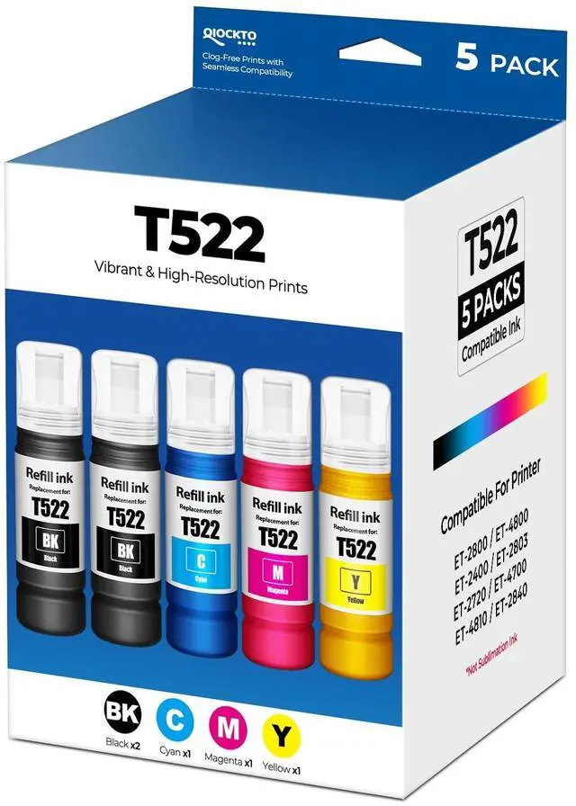 ^^ Package Includes: 522 ink refill bottles 5 pack contains 2 x 522 black ink, 1 x 522 cyan ink, 1 x 522 magenta ink, 1 x 522 yellow ink. No chips or cartridges neededrefill directly (Not sublimation ink).