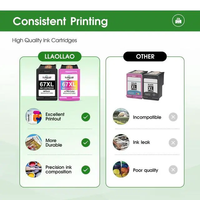 Page Yield: 700 pages per 67xl black ink cartridge, 400 pages for 67XL color ink cartridge at 5 percentage coverage on A4 paper repalcement for hp deskjet 2755e ink cartridges ^^ Our 67xl ink 67 cartridge repalcement for hp ink 67xl through strict quality inspection to bring you reliable printing effect