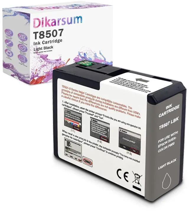 Package includes: 1 Pack T8507/T850700 (Light Black) Ink Cartridge, 84ML/Pack ^^ This high-yield T8507/T850700 ink cartridge uses the latest chip technology and high-quality ink, with an anti clogging nozzle design and easy installation ^^ T8507 High quality ink has high-quality printing effects, allowing more pages to be printed, reducing the frequency of replacing ink cartridges, and improving work efficiency ^^ We offer replacement/refund for all defects caused by our product. If you receive the item with problems, please contact us