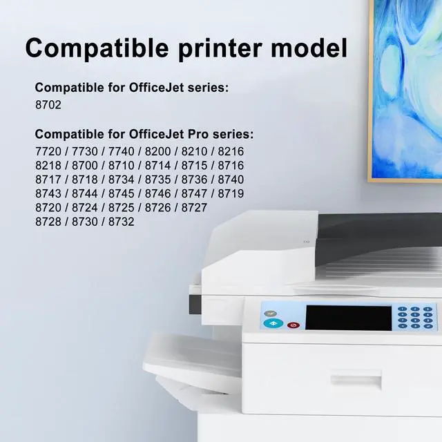 • Compatible with OfficeJet 8702 OfficeJet Pro 7720 7730 7740 8200 8210 8216 8218 8700 8710 8714 8715 8716 8717 8718 8734 8735 8736 8740 8743 8744 8745 8746 8747 8719 8720 8724 8725 8726 8727 8728 8730 8732M printers series