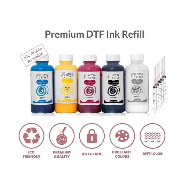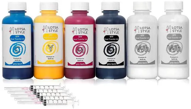250ml x 6 Set also available - AWESOME UPGRADE You will get 20% more value of DTF ink 4.06 oz (120ml) of Cyan, Magenta, Yellow and Black and 8.1 oz (240ml) of White plus 5 syringes with needles ^^ COMPATIBILITY For L1800, L800, 1430, P400/P408, P600/P608, P800, R1390, R1800, R1900, R2000, R2400, R2880, R3000, 3880, 4880, 7880, XP-15000, ET8500, ET8550 printer etc ^^ BRILLIANT, VIVID COLORS Make your designs stand out with bold, vibrant shades that transfer beautifully onto fabric.