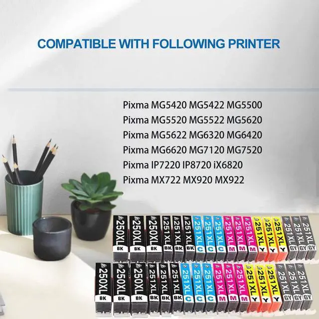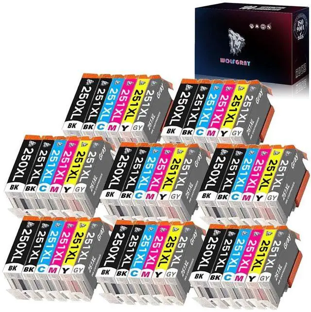 Complete Contents: This combo pack includes 8 Large Black PGI250XL, 8 Standard Black CLI251XL, 8 Cyan 250XL, 8 Magenta 250XL, 8 Yellow 250XL, and 8 Gray 250XL. Large capacity for school, office, and home printing needs ^^