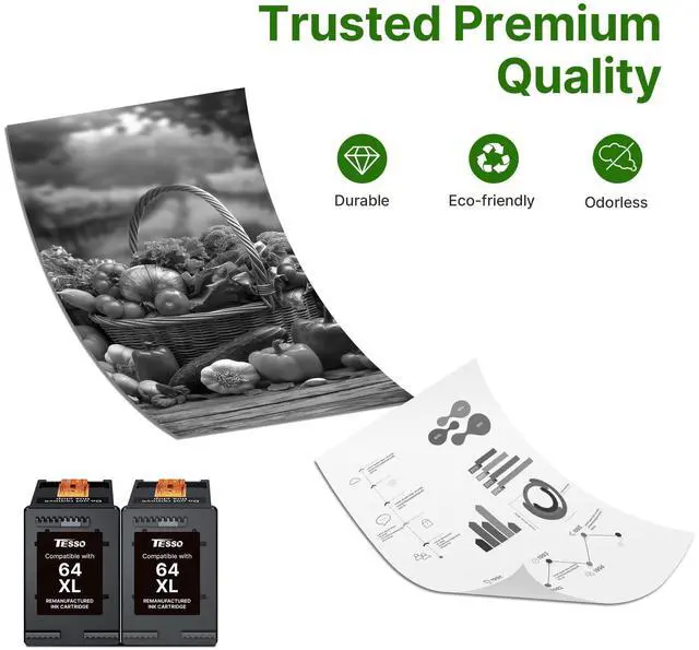 High yield 64XL compatible for HP 64 Ink Cartridges Black Color Combo Pack replacment for HP Ink 64 ^^ This 64XL Combo Pack ink cartridge compatible for Envy Photo 6220, 6222, 6230, 6232, 6234, 6252, 6255, 6258, 7100, 7120, 7130, 7132, 7134, 7155, 7158, 7164, 7230, 7272, 7275, 7800, 7820, 7822, 7830, 7855, 7858, 7864, 7975, 7978 Printer; compatible for Tango Smart Home, compatible for Tango Tango X Tango Terra Printer, compatible for Tango Terra Printer ^^