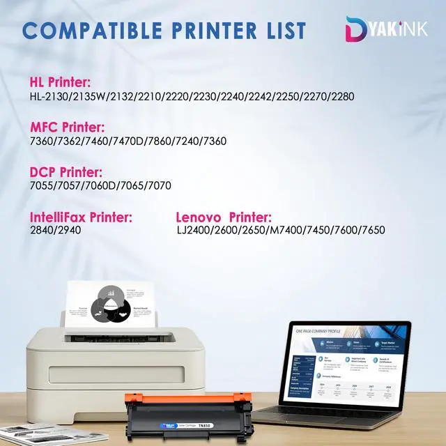 High-Yield Performance: Each TN450 prints up to 2, 600 pages; 4-pack yields ~10, 400 pages. Reduce cost per page and print with confidence.