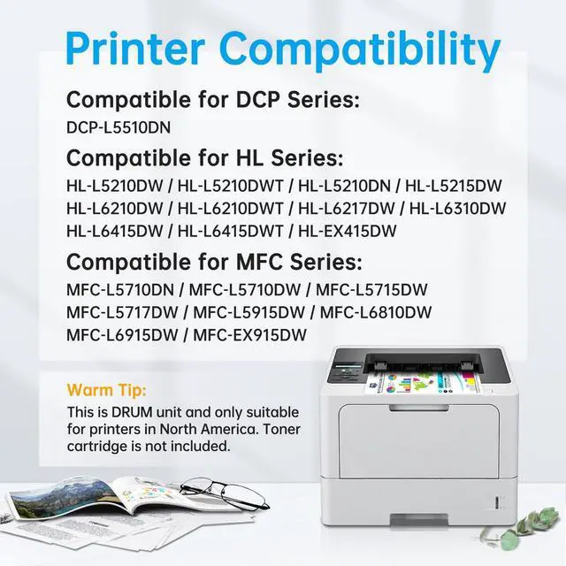 ^^ Printer Compatibility: Compatible for Brother HL-L6210DW/HL-L5210DN/HL-L5210DW/HL-L5210DWT/HL-L5215DW/HL-L6210DWT/HL-L6217DW/HL-L6310DW/HL-L6415DW/HL-L6415DWT/HL-EX415DW; for