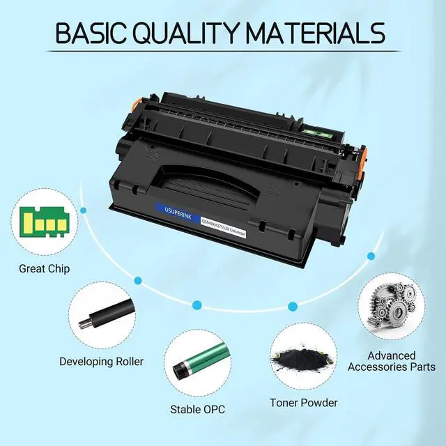 Package Contents: 1 x Q5949X Black Toner Cartridge, 1 x User Guide. USUPERINK strikes for every customer's satisfaction. ^^ Estimated yield to 7, 000 pages per Q5949X toner cartridge (under condition of 5% coverage in A4 paper). Meet in the requirement of ISO/IEC 19752. ^^ Compatible for