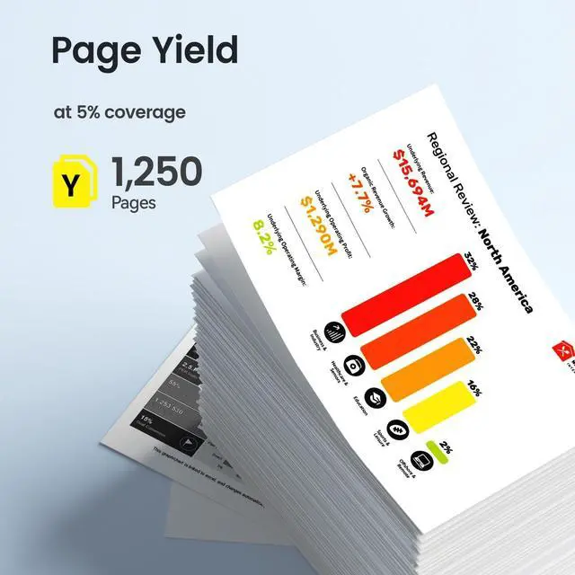 High Page Yield: Up to 1250 pages per 206A yellow cartridge at 5% coverage on letter/a4 ^^ High