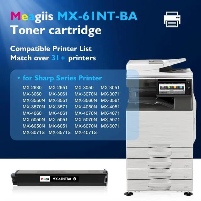 Compatible Printers: Fully compatible with Sharp MX-2630, MX-2630N, MX-2651, MX-3050, MX-3050N, MX-3050V, MX-3051, MX-3060, MX-3061, MX-3070N, MX-3070V, MX-3071, MX-3550N, MX-3550V, MX-3551, MX-3560N, MX-3560V, MX-3561, MX-3570N, MX-3570V, MX-3571, MX-4050N, MX-4050V, MX-4051, MX-4060, MX-4061, MX-4070N, MX-4071, MX-5050N, MX-5051, MX-5070N, MX-5070V, MX-5071, MX-6050N, MX-6050V, MX-6051, MX-6070N, MX-6070V, MX-6071, MX-3071S, MX-3571S, MX-4071S Printers ^^
