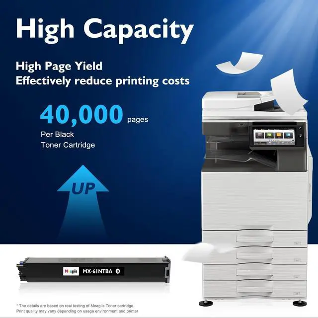 High Page Yield: Up to 40, 000 pages per MX-60NT-BA MX-61NT-BA Toner Cartridge at 5% coverage (Letter/A4), ideal for users with high-volume printing needs and reducing frequent replacement ^^