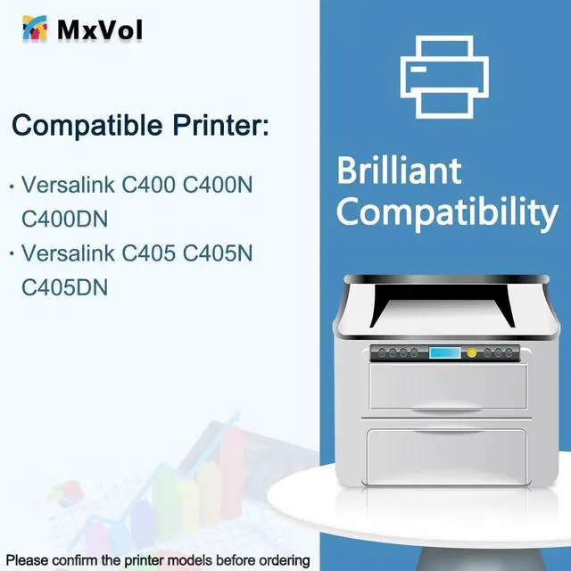 Compatible wth Xerox VersaLink C400/C405 toner black. Replacement for Xerox 106R03524. It's its high-capacity version of Xerox 106R03512 ^^ MxVol Remanufactured Versa link C400 C405 balck toner cartridge perfect work with Xerox Versalink C405 C405N C405DN and Xerox Versalink C400 C400D C400DN Printer. Recycling original OEM toner cartridge accessories is more friendly to your printers) ^^ High Page Yield - Black 10, 500 Pages at 5% coverage ISO/IEC 19752 (letter/A4) per c400 c405 black toner ^^ After-sales Service - We always stand by for your needs, even though refund window is close ^^ Quality Standard - All MxVol C400 C405 toner cartridges are certified by ISO 9001 quality assurance and ISO 14001 environmental management