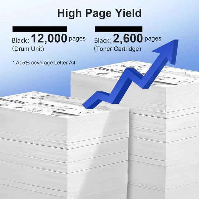 High Yield: 2, 600 pages per E310 toner cartridge, 12, 000 pages per E310 Drum Unit (5 percent coverage of letter A4) ^^