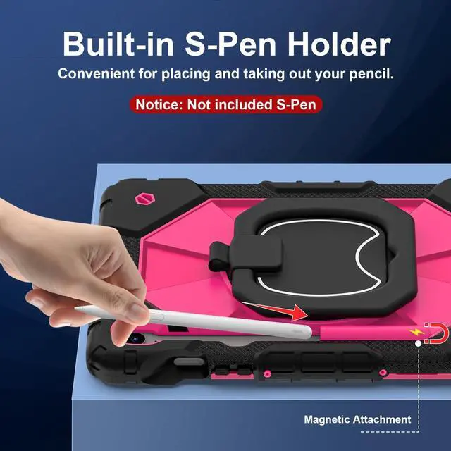CompatibilityThe Tablet case compatible with Samsung Galaxy Tab S10 Lite /Galaxy Tab S10 FE (X520/X526B/X528U) /Galaxy Tab S10/Galaxy Tab S9 FE (X510/X516B/X518U) /Galaxy Tab S9 (X710/X716B/ X718U), Note: Not suitable for other models, Please check your tablet before making a purchase. (Go to " Settings " on your tablet - About Tablet - Model). ^^ High Quality Materials The Tablet Case is made of advanced thermoplastic polycarbonate and anti slip silicone, which is heavy-duty and sturdy, The four corners are thickened and designed, perfectly protecting your machine from damage. ^^ Adjustable Stand The prominent PC stand allows you to easily access, type, watch movies, play games, and more during your study, work, and leisure travels. Flexible expansion and contraction, without taking up space. ^^ Built in Pen HolderBuilt in Apple Pencil slot, convenient for placing and removing pencils, no longer worrying about loss or damage. Always keep Apple Pencil as secure as iPad (only protective case, not Pencil included! ) ^^ Multi Functional Shoulder StrapComes with a detachable and adjustable shoulder strap, both children and adults can carry the tablet case with them, especially suitable for travel. You can hang it behind your seat like a TV while driving.