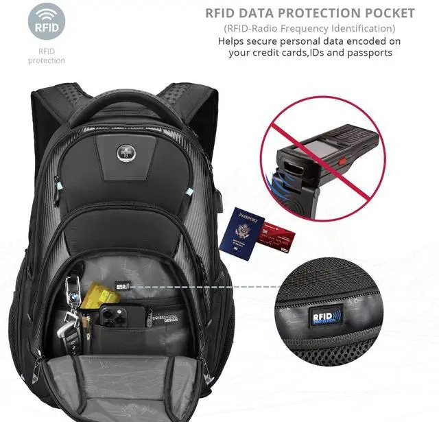 RFID DATA PROTECTION: Travel with peace of mind. With an integrated RFID protection compartment, helps to protect your personal data (such as credit cards, passports, and drivers licenses) from being accessed by scanners ^^