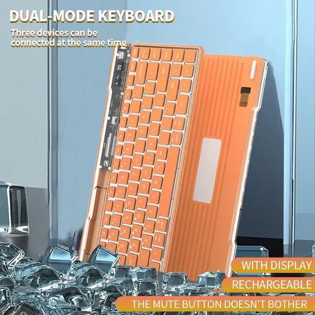 Widely compatible: The wireless keyboard supports 2.4G usb plug and play, and also supports Bluetooth direct connection, which can connect to mobile phones, tablets, laptops, desktop computers and other devices ^^ With display and mobile phone card slot design: there is a touch switch in the upper corner of the keyboard, an electronic display with both battery display and case display, and a card slot design for mobile phones in the upper left corner ^^