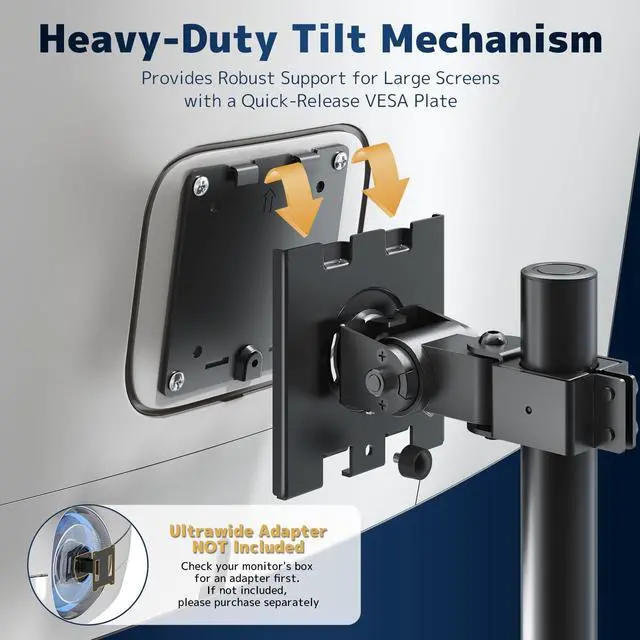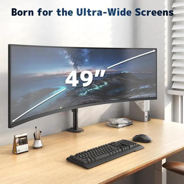 Space-Efficient Design: Column-mounted structure saves desk space compared to traditional monitor arms, ideal for compact workstations or ultrawide screens up to 49" (44 lbs max) ^^ Dual