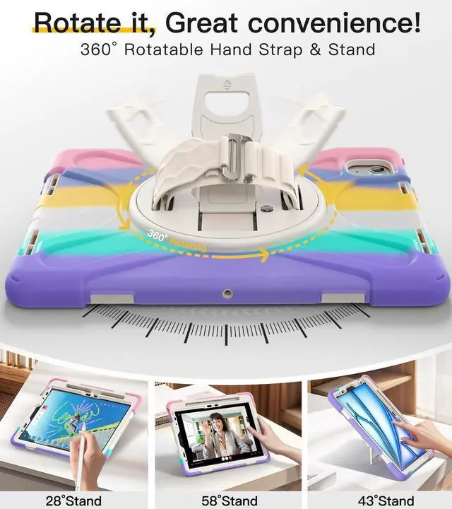 [Compatible]: This heavy Duty protective case case is NOT Compatible with iPad Pro 11 (M4) 2024. Only Compatible with iPad Air 11" M3 2025(A3266/A3267/A3270), iPad Air 11" M2 2024(A2902/A2903/A2904), Air 5th 10.9" 2022(A2588/A2589/A2591), Air 4th 10.9" 2020(A2072/A2316/A2324/A2325), Pro 11"4th 2022(A2759/A2435/A2761/A2762), Pro 11"3rd 2021(A2377/A2459/A2301/A2460), Pro 11" 2nd 2020(A2228/A2068/A2230/A2231), Pro 11" 1st 2018(A1980/A2013/A1934/A1979). Please check the model of iPad before purchasing. ^^ [Full Body