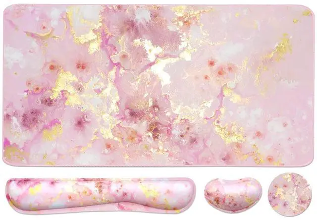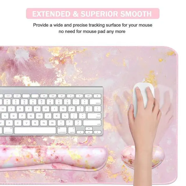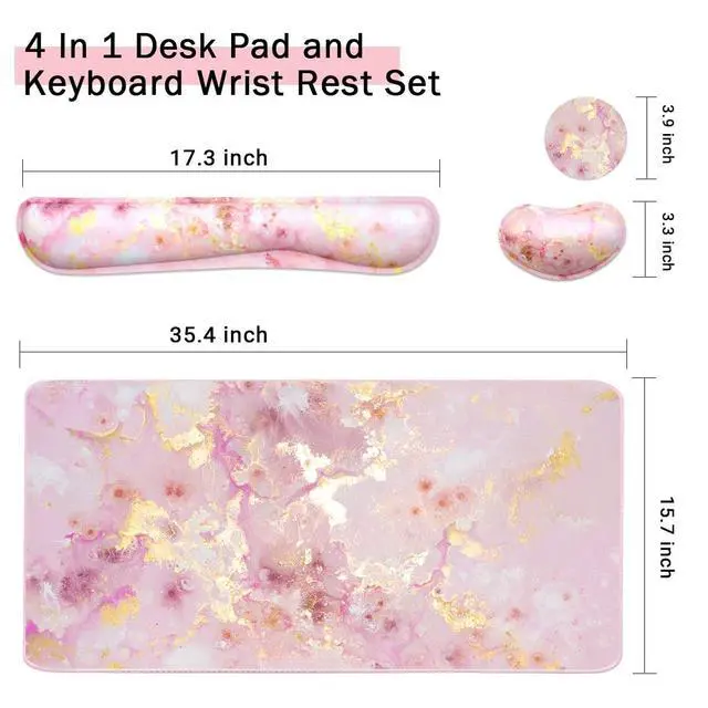 Keyboard Mouse Pad Set, Extended Mouse Pad+Keyboard Wrist Rest Support, Memory Foam Ergonomic Easy Typing, 3Pcs (35.415.7 in) Desk Pad Set for Home Office Study Game- Pink Gold Marble