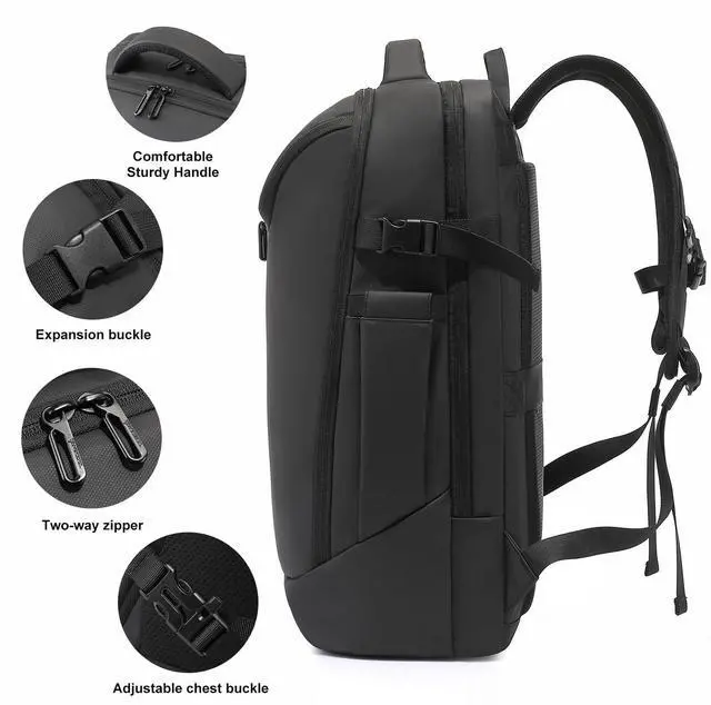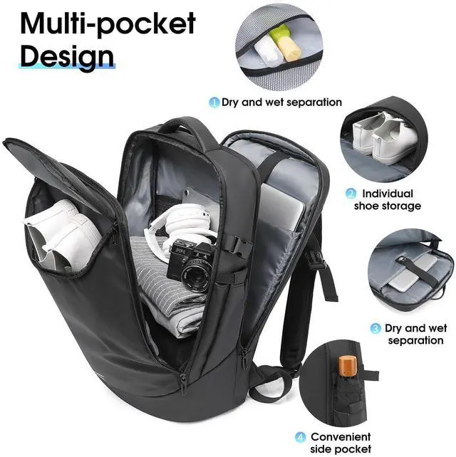 [MULTIPURPOSE DESIGN] TANGCORLE weekender backpack featured with a separate laptop compartment that can hold laptop up to 17 inch to protect laptop from damage. It has roomy main compartment enough for you to put your clothes, personal travel accessories items. Perfect for daily use, travel, business trip etc. ^^ [WATERPROOF and DURABLE] This business backpack is made of water-resistant oxford and durable zippers, lightweight and sturdy. It can be as a good gift for men and women. ^^ [FUNCTIONAL CONVENIENT] A luggage strap on back allows backpack fit on luggage / suitcase, slide over the luggage upright handle tube for eaiser carrying.