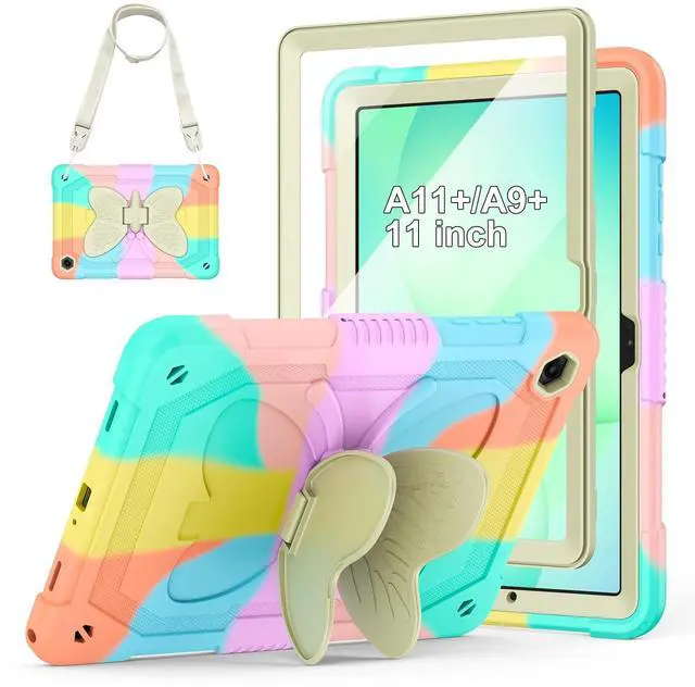 Design: The back side of Galaxy Tab A11 Plus/A9 Plus case is combined with Premium Soft silicone rubber and hybrid hard PC, while the front side adopt hard PC bumper, Which makes it easier to install and remove than traditional three layer case, provide full protection to your tablet from all angles ^^ Butterfly Kickstand & Build-in