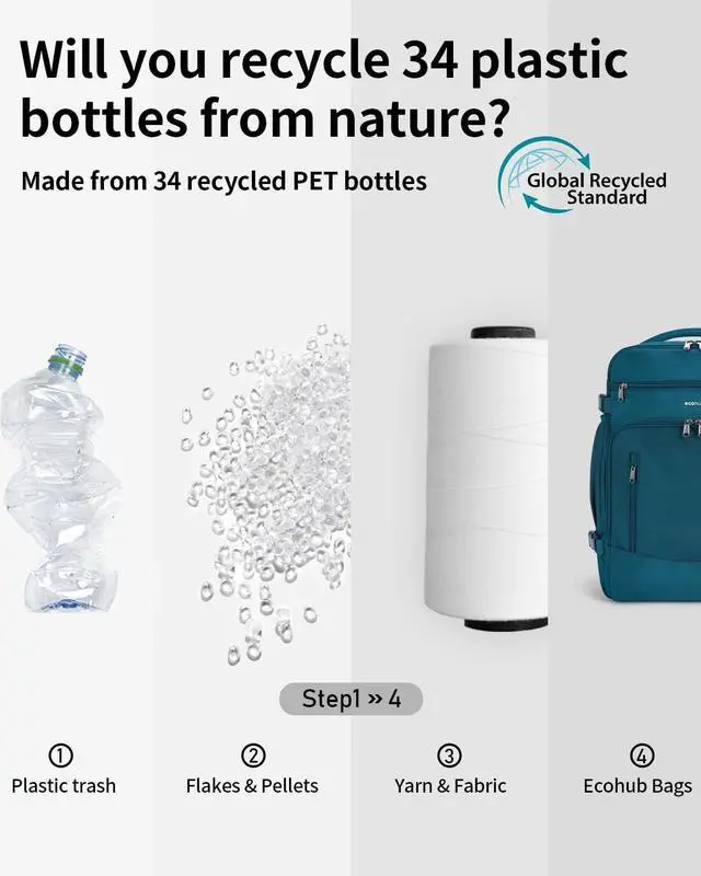 ^^ SUSTAINABLE AND GUARANTEE: Our carry on bag is made from at least 50% recycled materials, with fabric and lining crafted from 34 recycled PET plastic bottles. The water-resistant, lightweight fabric, combined with heavy-duty SBS zippers and reinforced ripstop stitching, ensure durability for any adventure. If you have any concerns, reach out through your order. (Patent Pending)