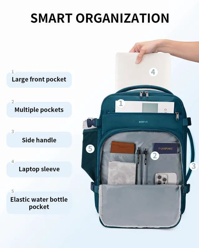 SAY NO TO BAGGAGE FEES: ECOHUB 30L Airplane travel backpack have the perfectly sized to avoid baggage fees. The underseat carry on bag measures 18x13x 7.9 inch just 1.6 lbs. Suitable for all major airlines like spirit, frontier, easyJet. PATENT PENDING) ^^ 180