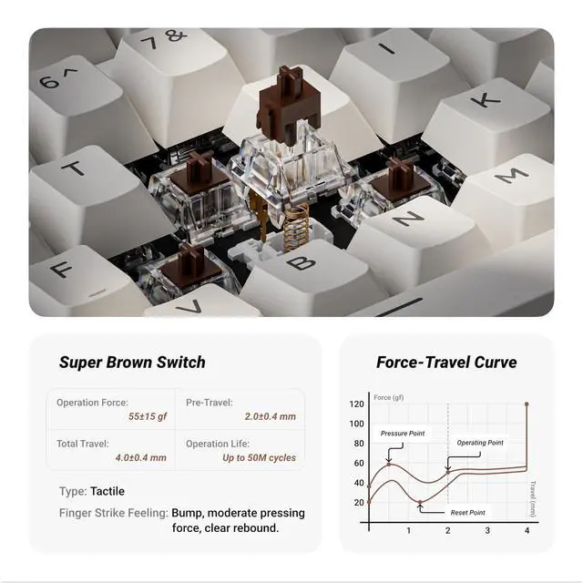 instantly between three modes: Stream music to 3 Bluetooth 5.2 devices, game lag-free with 2.4GH z HyperSpeed, or USB-C wired mode. Designed for multi-tasking pros. ^^ QMK/VIA Advanced Programming & Browser-Based Launcher: Reprogram every key via QMK/VIA firmware and build macros through the browser-based Launcherno downloads, no OS restrictions. Save profiles to onboard memory on Windows, macOS, Linux