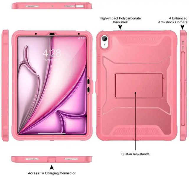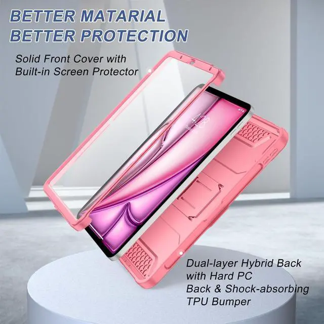 Generation 2020 (Model number: A2316, A2324, A2325, A2072). Please kindly check the model number A*** at the back of the tablet or Setting before purchase ^^ Rugged Armor Shockproof ProtectionMulti-layered hard PC back and flexible TPU bumper provide your iPad Air 11 and iPad Air 5/4 strong protection against drops, bumps, and impacts, also easy to install ^^ Built-in Screen ProtectorPrevents your New Apple iPad Air 11 Inch 7th/6th Gen & iPad Air 10.9 Inch 5th/4th generation screen from scratches without compromising sensitivity and provides full protection ^^ Precise cutoutsPrecise cutouts and design allow easy access to all ports, sensors, speakers, cameras without removing the case. Fully supports Pencil Pro/2nd Gen Pencil magnetic charging and Pencil (USB-C) wireless attach to keep your Pencil securely ^^ Built-in KickStandThis case for iPad Air 11 Inch & iPad Air 5th/4th Generation 10.9 Inch functional pop-out kickstand with dual stand angles for easily enjoying movies and better working. FREE YOUR HANDS