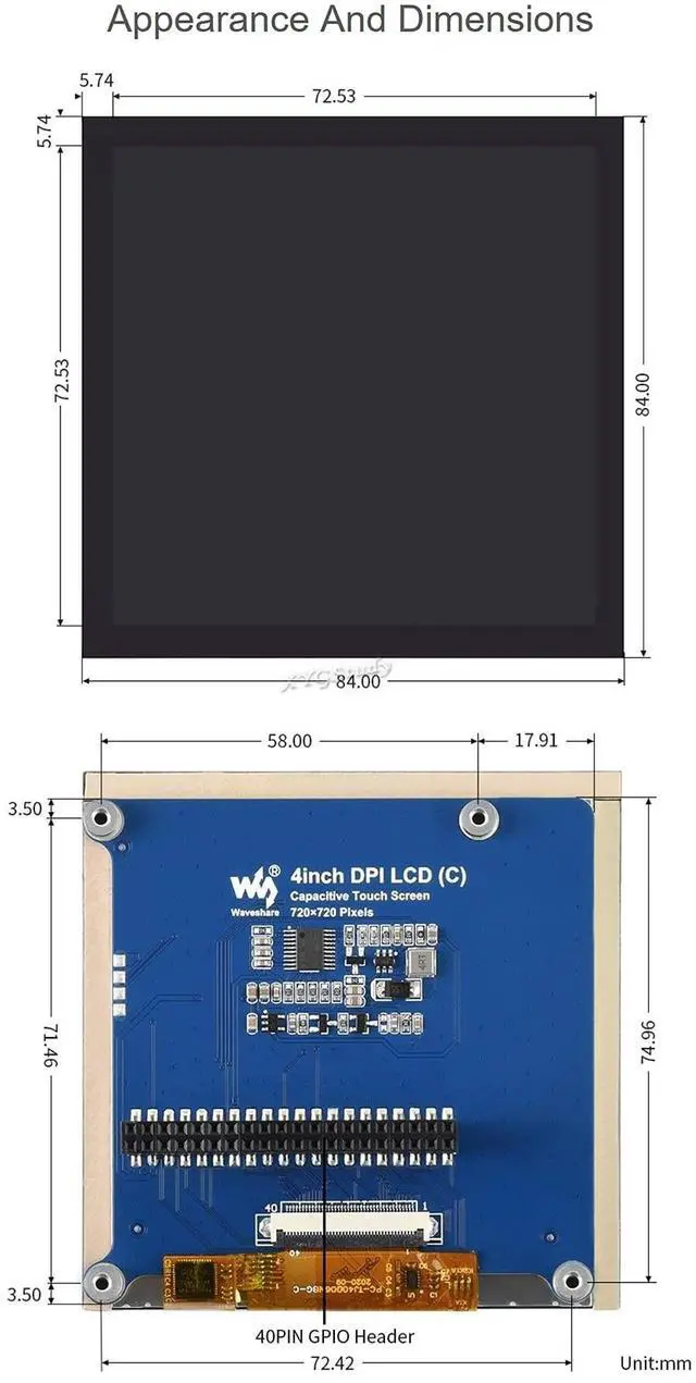 Overview 4inch square Capacitive Touch Screen LCD (C) for Raspberry Pi, 720720, DPI, IPS, Toughened Glass Cover, Low Power Solution Package Contains 4inch DPI LCD (C) x1 Screws pack x1 For more details you may need to know, pls firstly send me message via, I will then send attached document including User Guide for you, thank you for patience.; D
