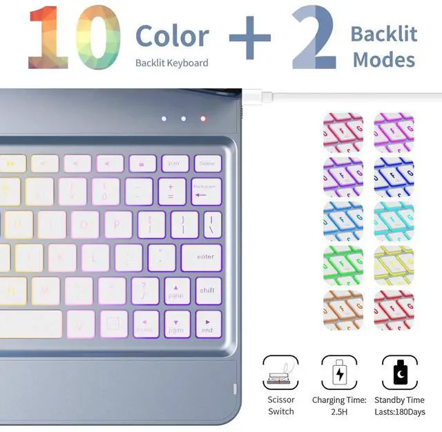 GGH Keyboard Case for iPad Pro 11 inch (4th/3rd/2nd/1st Gen),iPad Air 5th/4th Generation Case with Keyboard 10.9 inch,10 Color Backlight Bluetooth Keyboard with Pencil Holder,360 Rotatable Screen-RG