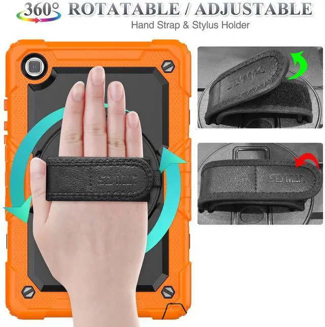 Release( Model: SM-T220 / T225 / T227 ) ^^ Soft Hand Strap & Portable Shoulder Strap & Rotating Stand: Provide the securest protection and more convenience when you play or work with case for galaxy a7 lite tablet case; Hang it anywhere for your better entertainment, make your hands-free; 360 Degree rotating Kickstand provides multi-angle viewing, with soft handle strap, easier to use your tablet in your outdoor travelling, working, gaming ^^