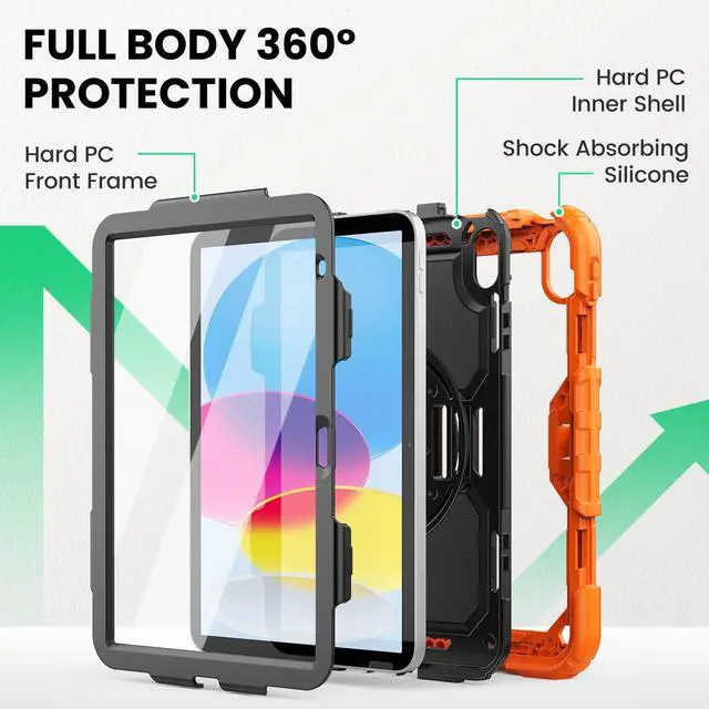 ^^ Full Protection: 3-layer front-and-back protective case protects your A16 11th/10th Generation tablet against drops, scratches, and scuffs; hard internal shell, soft silicone exterior and built-in screen protector deflect everyday action and accidents. ^^ Rotating Stand and