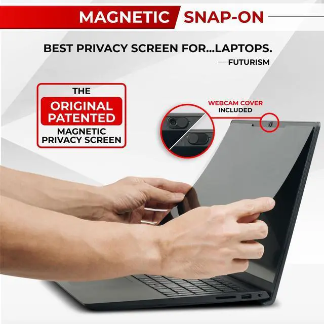 Instant Snap-on Magnetic Attachment- The Patented Magnetic Privacy Screen Protected by U. S. Patents 9, 829, 669 and D844, 012. Simply place the privacy screen along the top of your MacBook and let the magnets attach along the top. No need for tricky placement, messy tape, or damaging adhesive. Easily remove and reattach when you need it.