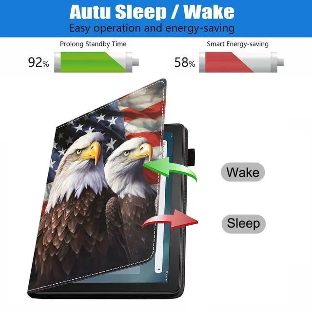 Perfectly decor your tablet, Beauty and function come together. Made of High end PU leather, features shockproof, protective smooth outer casing and sturdy exterior with soft microfiber interior keeps your tablet screen safe. Convenient multi viewing kickstand for watching movie or typing. Great for holding in landscape mode to watch videos. Designed with 3 delicate card slots inside for you to carry your necessary cards. There is a flexible pencil holder at the edge of the shell for keeping your stylus in place (Stylus is not included). Provide auto sleep/wake, Open the case to wake up and close the case to shut off, Saved power.