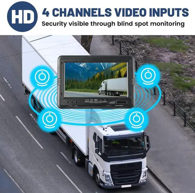 Selectable Viewing Modes: Single Full View / Split Dual Video View / Split Tri Video View / Quad Four View. ^^ 7" monitor comes with an IR remote controller for easy operation. Sunshade design for Anti-glare; Ideal for agriculture applications, RV's and semi trucks with multiple camera configurations ^^