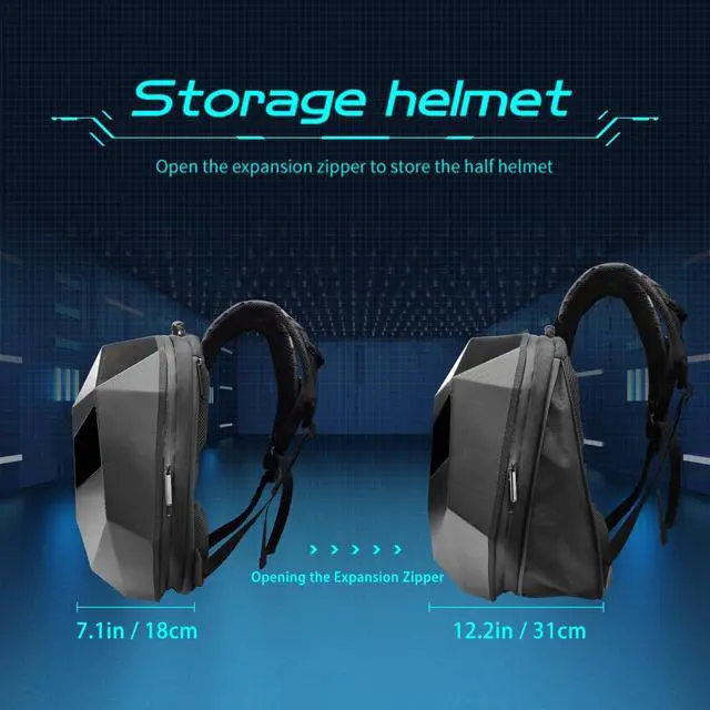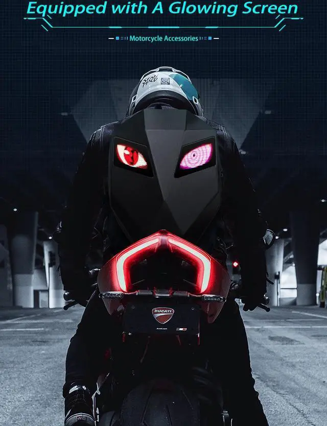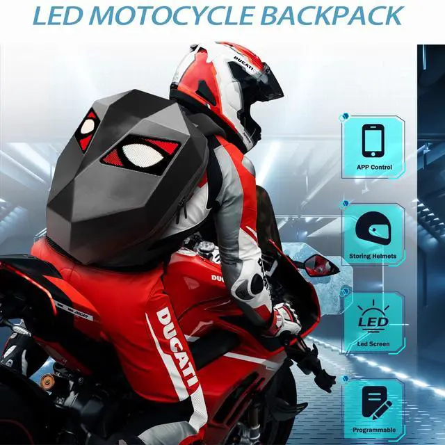 Eye-catching Eye Backpack: This 3D hard shell design motorcycle backpack hides a pair of glowing and cool eyes. This led backpack is sure to turn heads and make you stand out on the road ^^ Room for