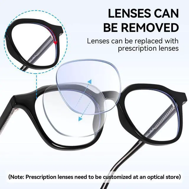 The Lens are anti-scratch coated and pecial anti-fingerprint layer, Say goodbye to pesky fingerprints and unsightly scratches ^^ Ultralight Acetate+TR90Crafted with ultralight Acetate + TR90, these blue light glasses feature reinforced metal hinges and one-piece non-deformable nose pads, delivering a comfortable, stress-free fit with no ear or nose discomfort even after 24 hours of wear ^^ No Risk To TryYour satisfaction is our top priority. If you have any questions or concerns, please dont hesitate to contact us. Were committed to resolving any issues until youre completely satisfied. Try them today with no risk