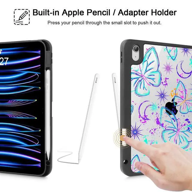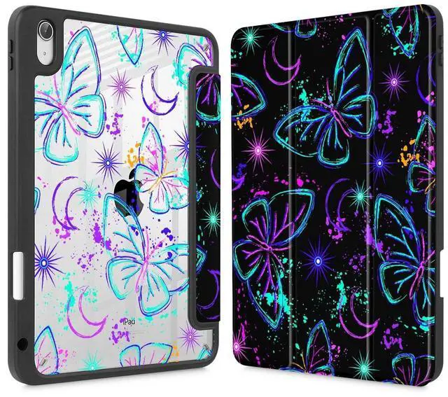 Mektron Case for 2025 iPad 11 inch (A16 Chip) 11th Gen Fit iPad 10th Gen10.9 inch 2022, Buit in Pencil Holder with Shockproof Cover Clear Shell + Trifold Stand + Auto Wake/Sleep, Fantasy Butterfly