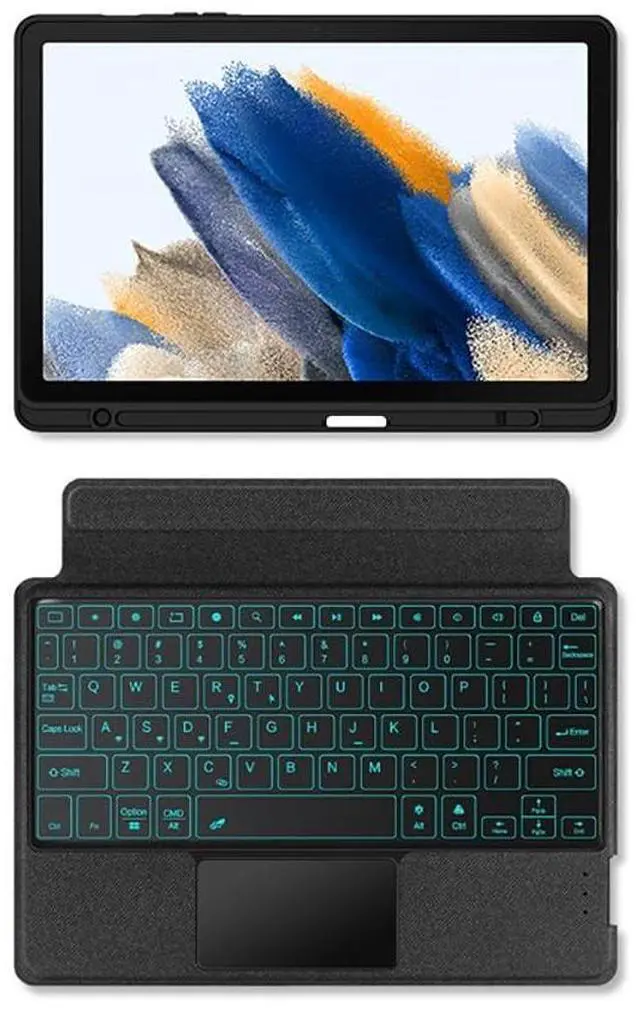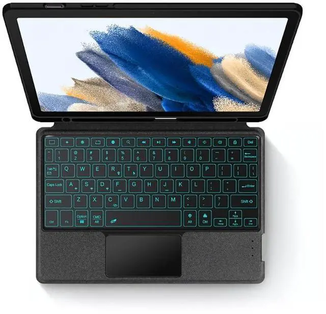 ^^ 7 Colors Backlight KeyboardThis Galaxy tab A8 keyboard has seven backlight colors and three brightness levels. The seven backlight colors are beautiful, the three brightness models make you comfortable to type in the dark. Not only protect your eyes, but also could improve work efficiency. The full-size keycaps, function keys make you get the PC feeling type experience. ^^ Built-in TrackpadThe wireless keyboard built-in touchpad for easy scrolling, which support multi-finger function will offer a great aid when you do not have a mouse in hand, allows you to use it like a laptop, very convenient.