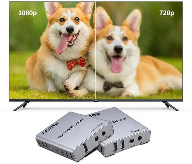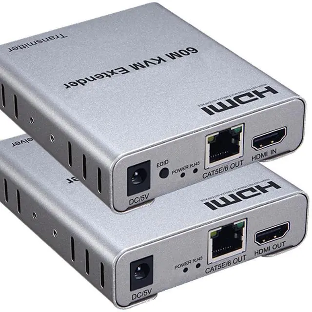 BolAAzuL 1080P@60Hz HDMI KVM USB Extender Over RJ45 Single Cat5e/6 Ethernet CableThis HDMI KVM extender is capable of transmitting signals up to a distance of 60 meters. It enables you to place your workstation up to 60m away from a server a USB keyboard and a mouse console. This HDMI USB KVM extender extends HDMI & USB-based signals over a single CAT5E/6 cable. With up to 1080P resolution, you can get a sharp and clear video even on large monitors. With this device, you can easily extend your HDMI signal without any loss in quality.