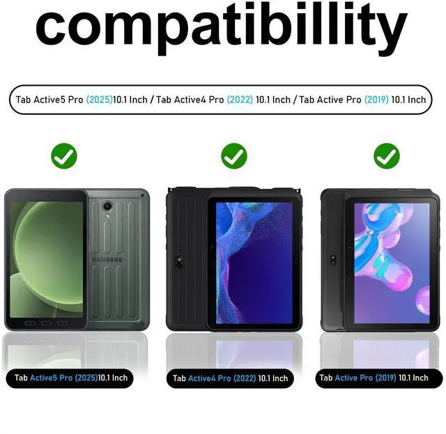 COMPATIBILITY: Case for Samsung Galaxy Tab Active 5 Pro 2025 10.1 InchSM-X350) & Active 4 Pro 2022 (SM-T630 / SM-T638) & Active Pro 2019 (SM-T540 / SM-T547), Please check the model number SM-T*** by clicking "Settings" - "About device" before purchasing ^^