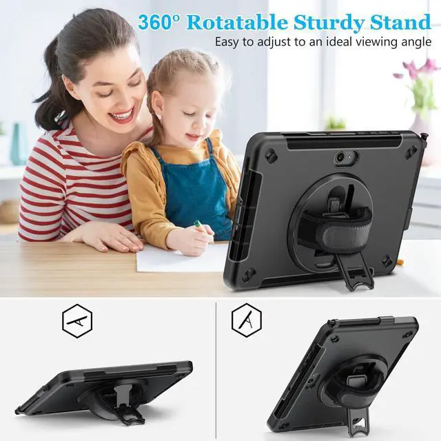 DETACHABLE SHOULDER STRAP: The hand strap is convenient for you to hold the tablet S6 Lite with one hand when you show it to others. It is convenient for teachers, students, waiters, nurses. The detachable and adjustable shoulder strap can carry your tablet more securely during traveling, engineer outdoor operation, taking a photograph, etc. The shoulder strap also allows you to hang up your tablet behind car seat for entertainment for kids ^^ BUILT-IN APPLE PENCIL HOLDER +