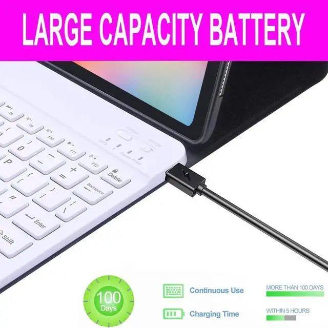Package Included: 1*bluetooth Keyboard Case1*Micro USB Charging Cable1*User ManualKind Tips: The keyboard will automatically sleep if you do not use it within 10 minute. Then press any key and wait 2-3 seconds, the device will automatic return the last time you read.