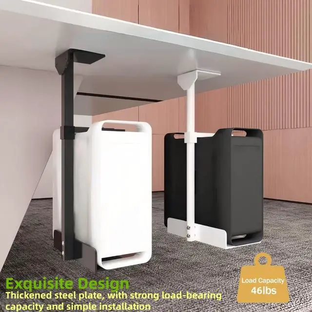 The wide adjustment range is suitable for various CPU chassis from medium to full-size. Before purchasing this bracket, please check if your computer case is suitable. ^^ High Quality SteelThe computer host bracket is made of professional cold-rolled steel, and the surface is polished and sprayed to prevent rust and surface scratches. Can bear up to 46 lbs. ^^ Easy InstallationThe computer host bracket is equipped with 4 self-tapping screws. Once the installation position is determined, it can be easily installed under any wooden table or on any wall (the table thickness needs to be more than 0.7 inches).