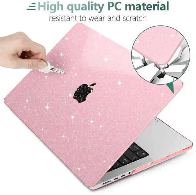 TWOLSKOO for MacBook Pro 14 inch Case M5 M4 M3 M2 M1 Pro Max Chip (2026-2021), Plastic Hard Shell & Keyboard Cover & Type C Adapter & Screen Protector, Glitter Pink