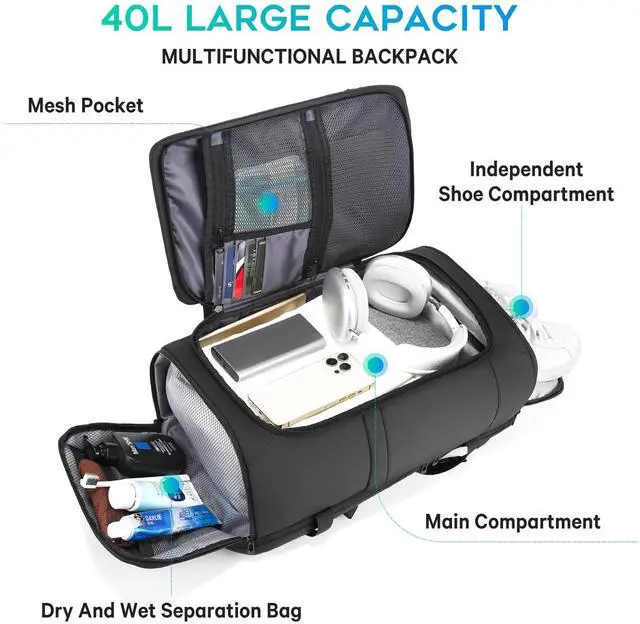 Separated Comparment: Besides the basic function, BANGE 40L backpack has a shoe compartment at the bottom and a Dry-Wet separated comparment at the top, it can well orgnize your personal items when your traveling or business trip. ^^ Well Orgnized Large