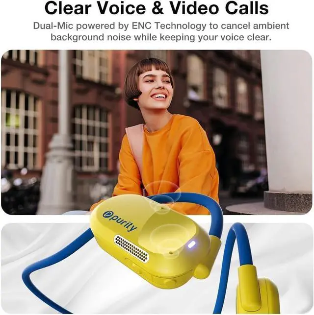 Purity Air Open Ear Headphones - True Air Conduction Wireless Bluetooth Open Ear Earbuds with Dual Mic for iPhone/Android - Secured Long Wearing Comfort, Sports Sweat Resistant (Yellow/Blue)