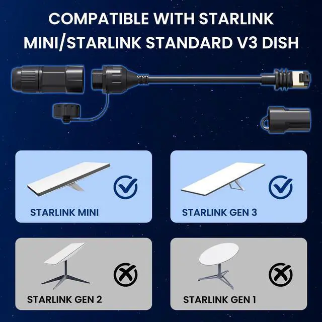Special Tips]: This fit for starlink gen 3 ethernet cable compatible with starlink standard V3 (Rev. 4)/MINI dishy and router. In scenarios requiring an ethernet cable coupler/extender, opt for Cat6A or better cables with 23 AWG or higher and high-quality RJ45 ends for a reliable connection. Due to the unstable power of third partys POE injector, we recommend using regular Ethernet cable (23 AWG or better) not exceeding 75 ft in length ^^ [Customizable